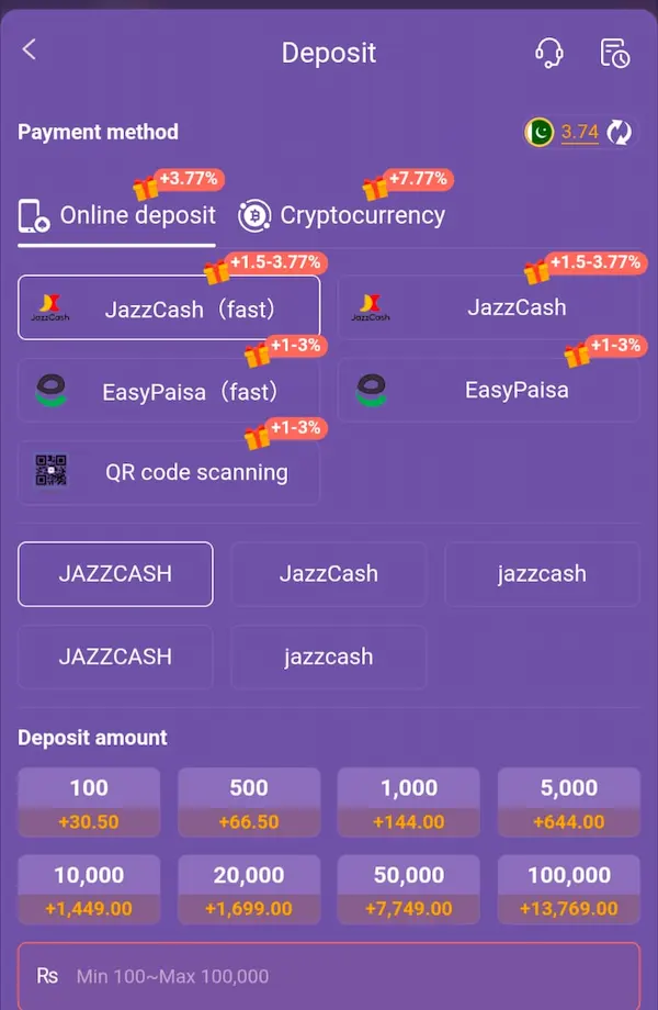 Add Money Go to the Deposit section inside your profile menu. Choose JazzCash, EasyPaisa, or bank transfer as your preferred payment method. Type your deposit amount, confirm the transaction, and watch your balance update almost instantly. The minimum deposit stays very low so every player, regardless of budget, can participate comfortably.
